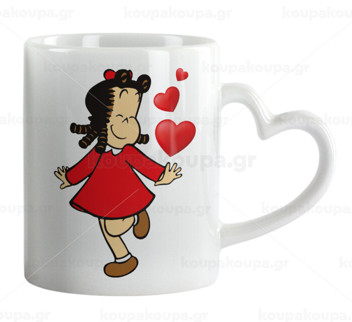 Η μικρή Λουλού, Κούπα καρδιά χερούλι λευκή, κεραμική, 330ml
