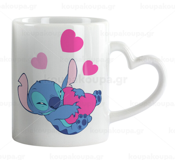 Lilo & Stitch hugs and hearts, Κούπα καρδιά χερούλι λευκή, κεραμική, 330ml