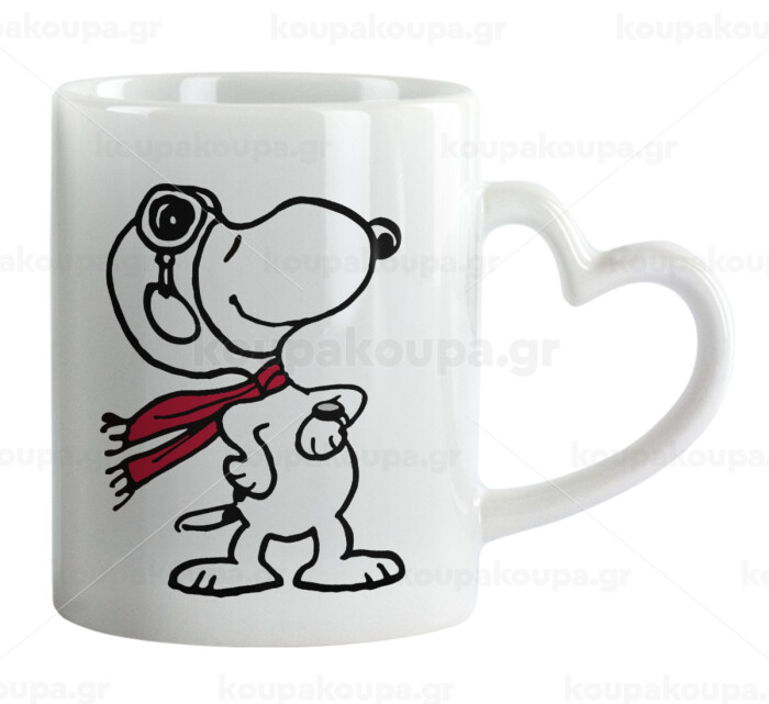 Snoopy ο πιλότος, Κούπα καρδιά χερούλι λευκή, κεραμική, 330ml