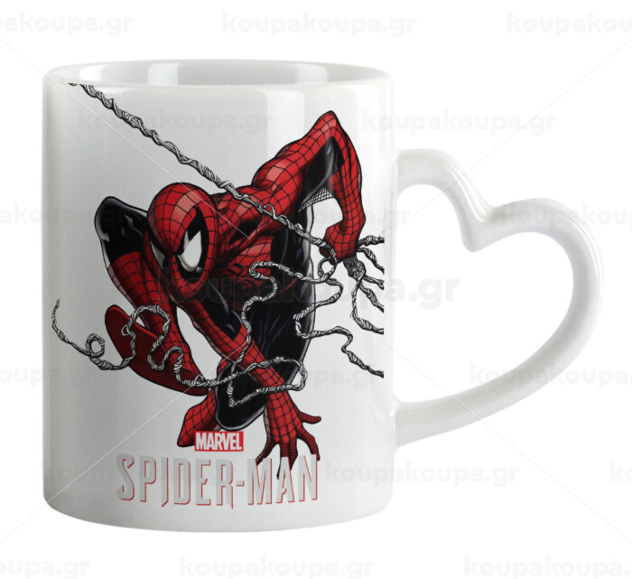 Spider-man, Κούπα καρδιά χερούλι λευκή, κεραμική, 330ml