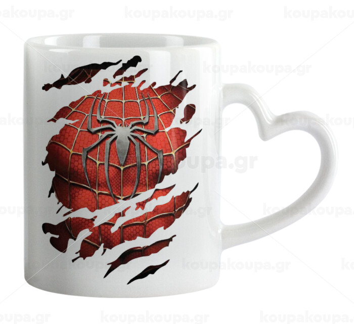Spiderman cracked, Κούπα καρδιά χερούλι λευκή, κεραμική, 330ml