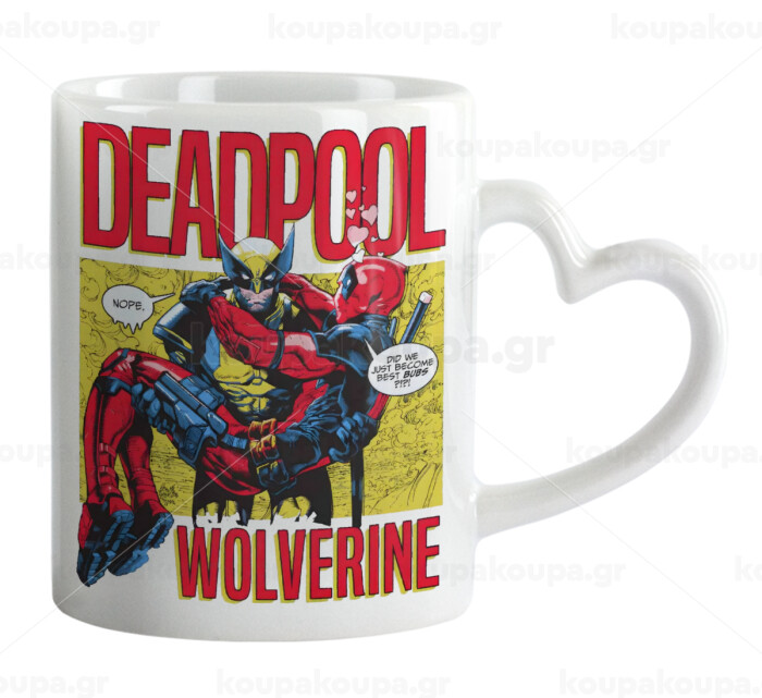 Superhero Deadpool Wolverine, Κούπα καρδιά χερούλι λευκή, κεραμική, 330ml