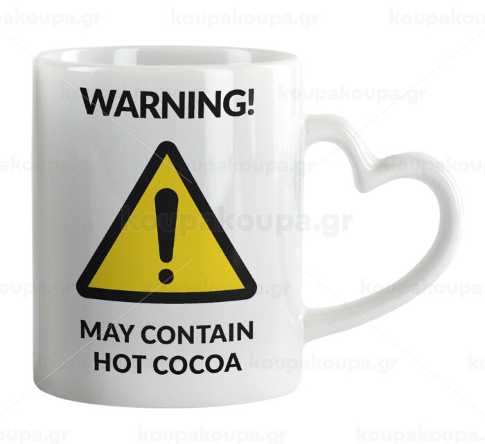 WARNING MAY CONTAIN HOT COCOA MUG PADDINGTON, Κούπα καρδιά χερούλι λευκή, κεραμική, 330ml