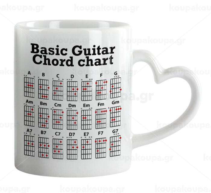Συγχορδίες κιθάρας, Κούπα καρδιά χερούλι λευκή, κεραμική, 330ml
