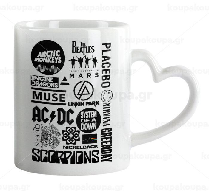 Best Rock Bands Collection, Κούπα καρδιά χερούλι λευκή, κεραμική, 330ml