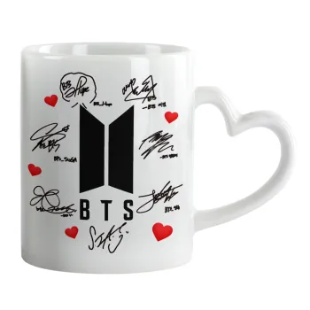 BTS signs, Κούπα καρδιά χερούλι λευκή, κεραμική, 330ml