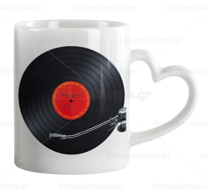 Columbia records bruce springsteen, Κούπα καρδιά χερούλι λευκή, κεραμική, 330ml