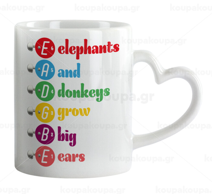 Elephants And Donkeys Grow Big Ears, Κούπα καρδιά χερούλι λευκή, κεραμική, 330ml