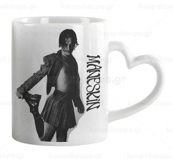 Maneskin Damiano David, Κούπα καρδιά χερούλι λευκή, κεραμική, 330ml