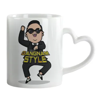 PSY - GANGNAM STYLE, Κούπα καρδιά χερούλι λευκή, κεραμική, 330ml