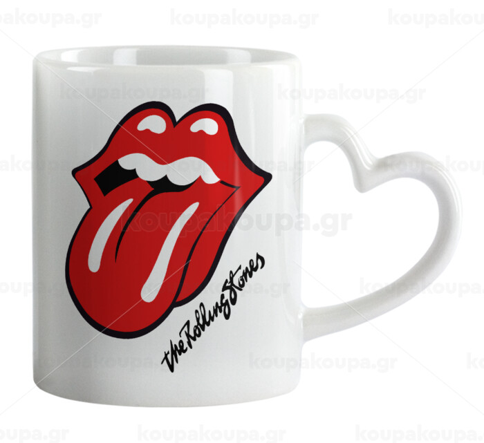 The rolling stones, Κούπα καρδιά χερούλι λευκή, κεραμική, 330ml