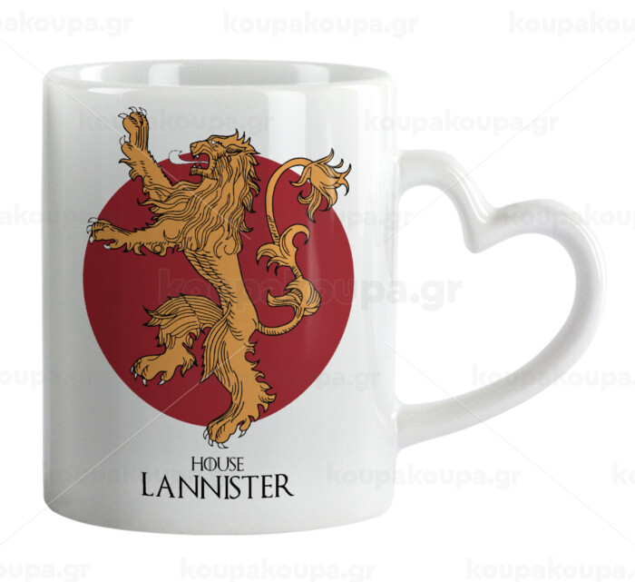 House Lannister GOT, Κούπα καρδιά χερούλι λευκή, κεραμική, 330ml