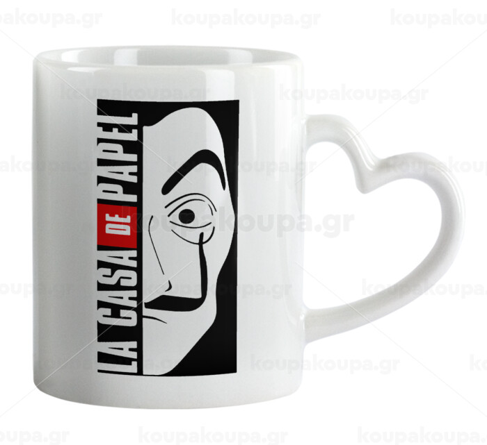 La casa de papel vertical, Κούπα καρδιά χερούλι λευκή, κεραμική, 330ml