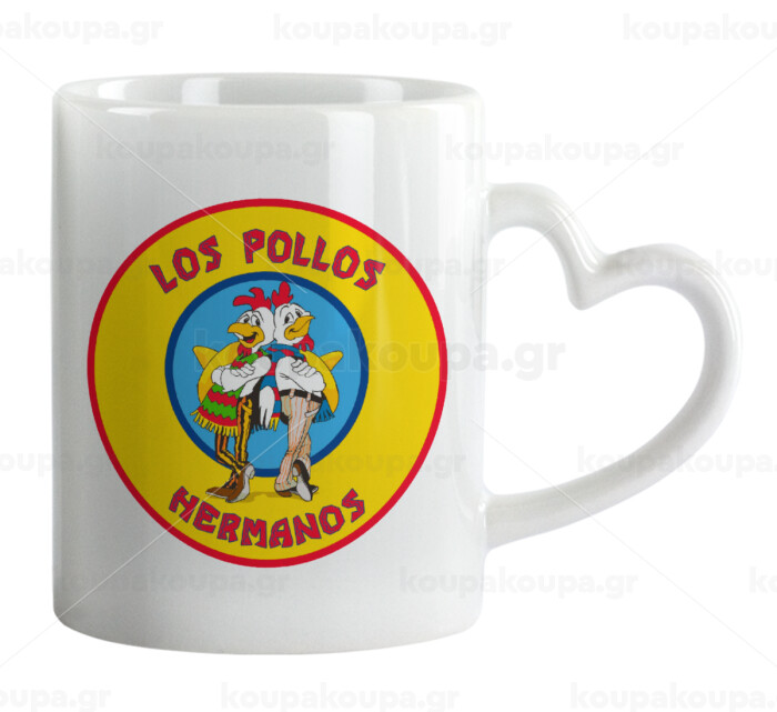 Los Pollos Hermanos, Κούπα καρδιά χερούλι λευκή, κεραμική, 330ml