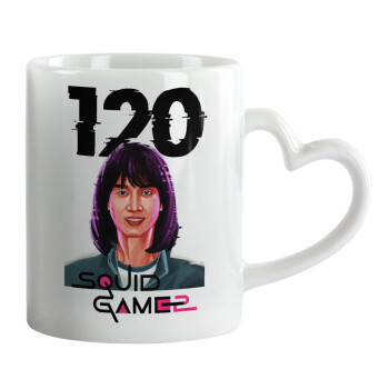 Squid game 120 Cho Hyun-ju, Κούπα καρδιά χερούλι λευκή, κεραμική, 330ml
