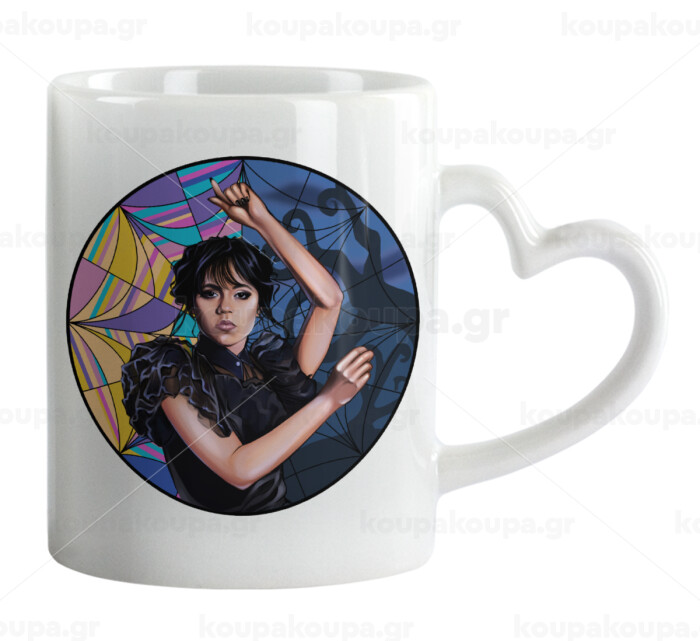 Wednesday dance, Κούπα καρδιά χερούλι λευκή, κεραμική, 330ml