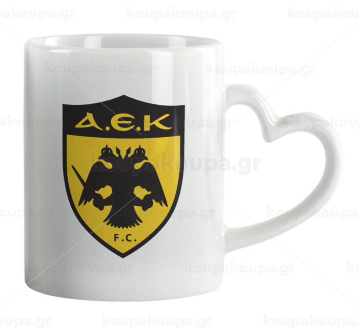 ΑΕΚ, Κούπα καρδιά χερούλι λευκή, κεραμική, 330ml