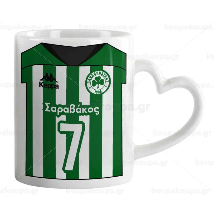 Παναθηναϊκός εμφάνιση, Κούπα καρδιά χερούλι λευκή, κεραμική, 330ml
