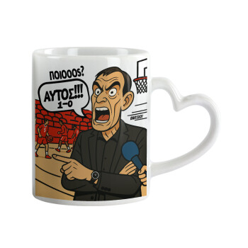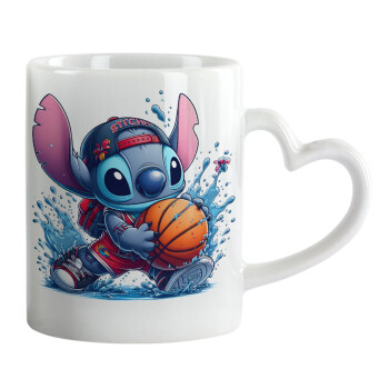 Stitch Basketball, Κούπα καρδιά χερούλι λευκή, κεραμική, 330ml