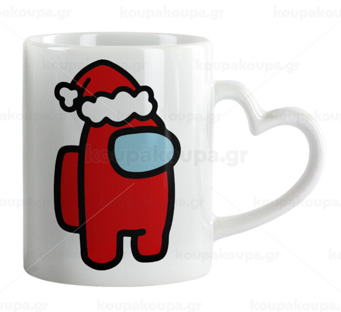 Among US Santa, Κούπα καρδιά χερούλι λευκή, κεραμική, 330ml
