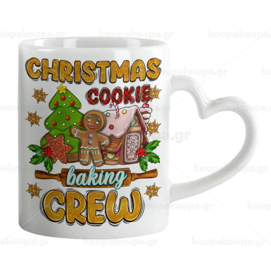 Christmas Cookie Baking Crew, Κούπα καρδιά χερούλι λευκή, κεραμική, 330ml