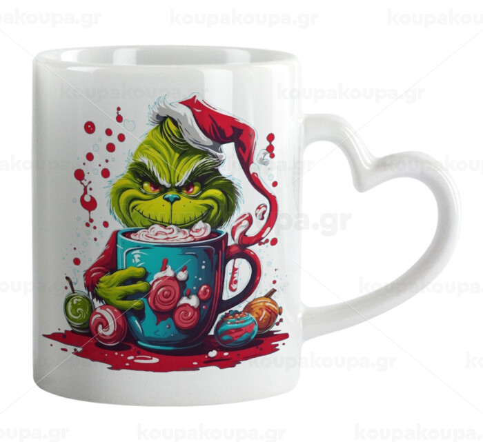 Giggling Grinchy Galore, Κούπα καρδιά χερούλι λευκή, κεραμική, 330ml