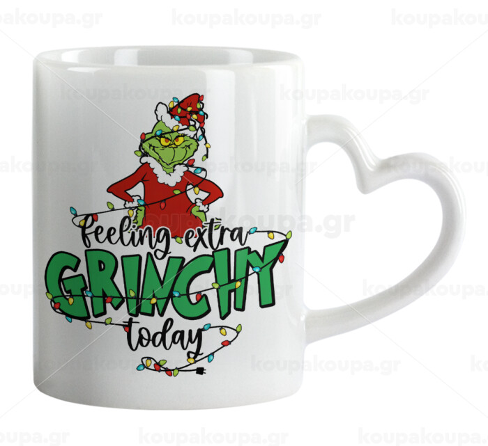 Grinch Feeling Extra Grinchy Today, Κούπα καρδιά χερούλι λευκή, κεραμική, 330ml