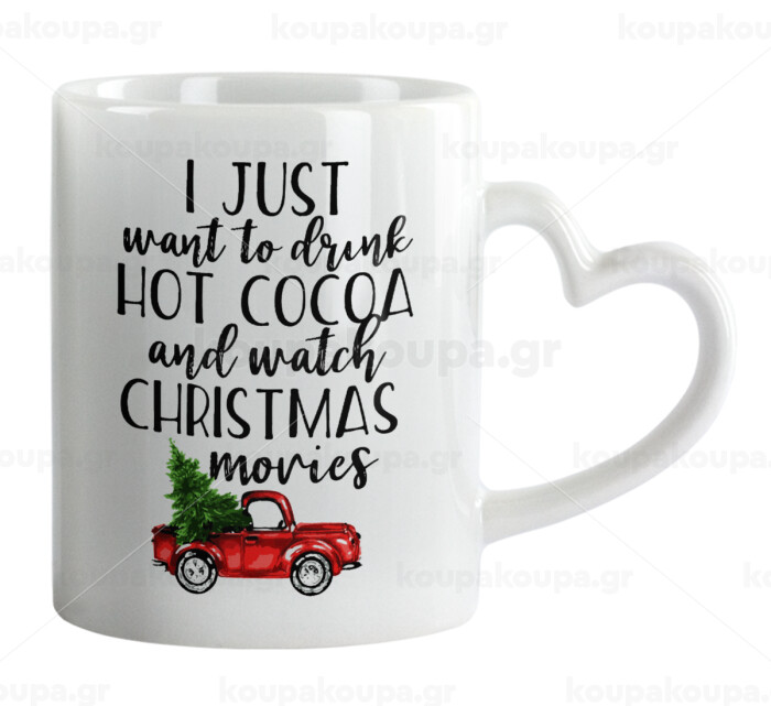 I just want to drink hot cocoa and watch christmas movies pickup car, Κούπα καρδιά χερούλι λευκή, κεραμική, 330ml