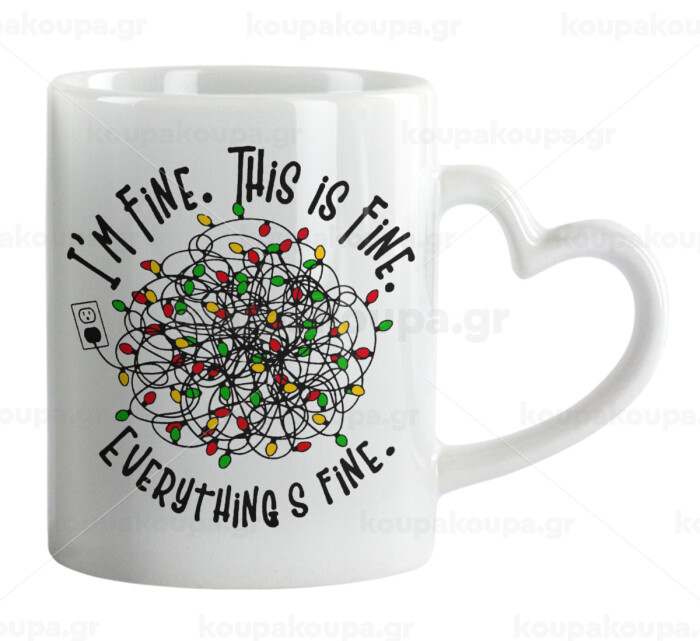 It's Fine I'm Fine Everything Is Fine, Κούπα καρδιά χερούλι λευκή, κεραμική, 330ml