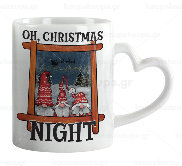 Oh Christmas Night, Κούπα καρδιά χερούλι λευκή, κεραμική, 330ml