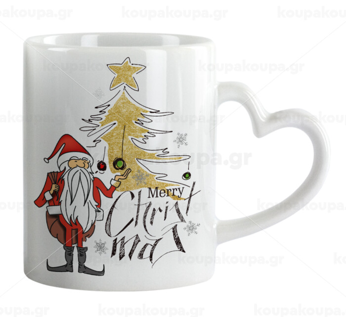 Santa Claus gold, Κούπα καρδιά χερούλι λευκή, κεραμική, 330ml