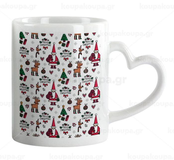 Santas, Deers & Trees, Κούπα καρδιά χερούλι λευκή, κεραμική, 330ml