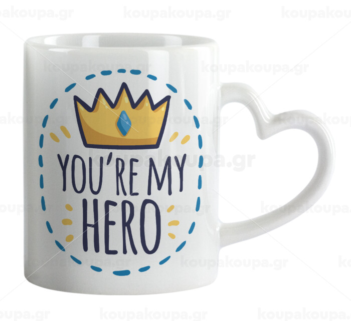 Dad, you are my hero!, Κούπα καρδιά χερούλι λευκή, κεραμική, 330ml