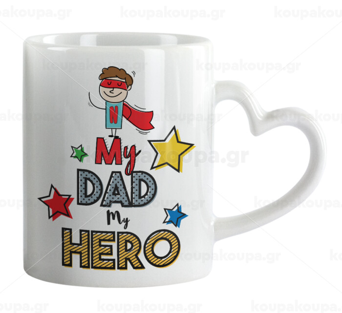 My Dad, my Hero!!!, Κούπα καρδιά χερούλι λευκή, κεραμική, 330ml