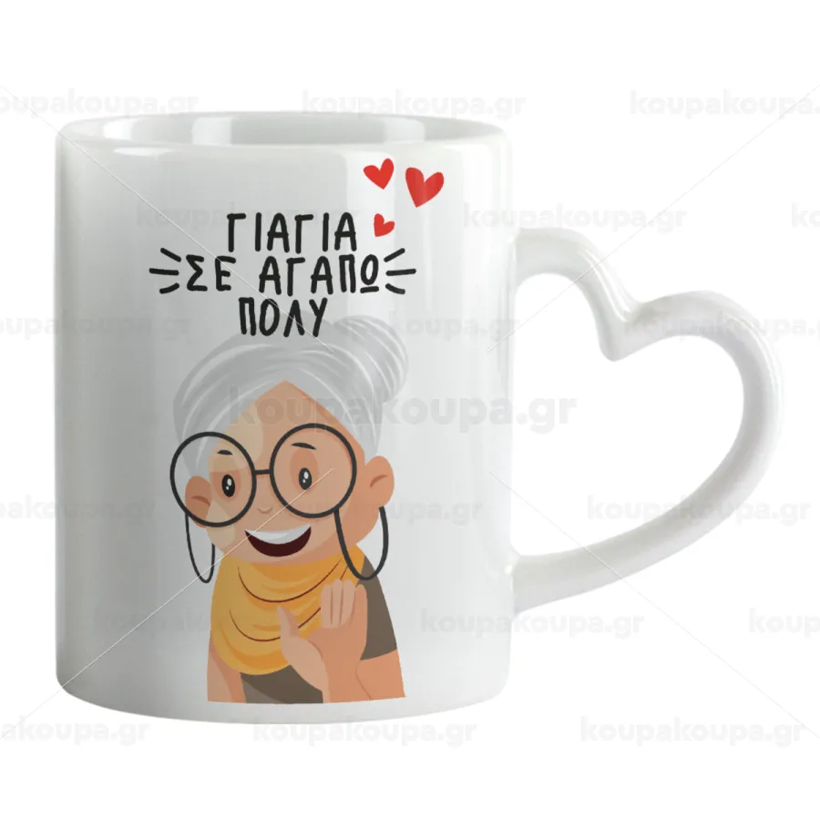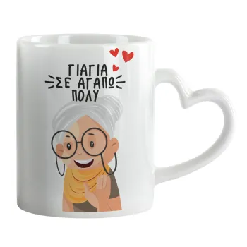 Γιαγιά σε αγαπώ πολύ!, Κούπα καρδιά χερούλι λευκή, κεραμική, 330ml