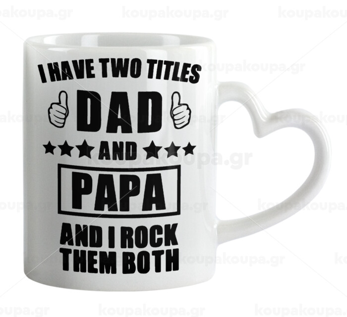 I have two title, DAD & PAPA, Κούπα καρδιά χερούλι λευκή, κεραμική, 330ml