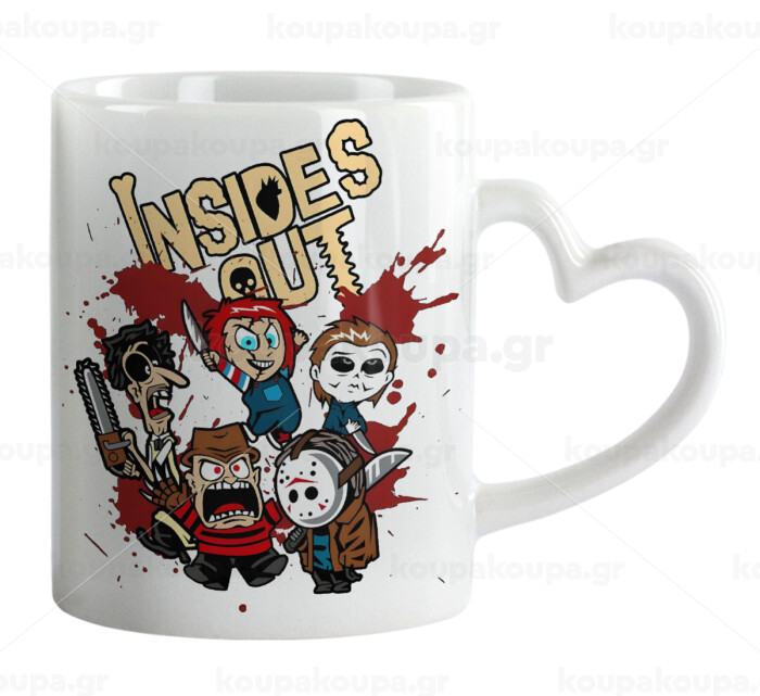 Halloween Inside out, Κούπα καρδιά χερούλι λευκή, κεραμική, 330ml
