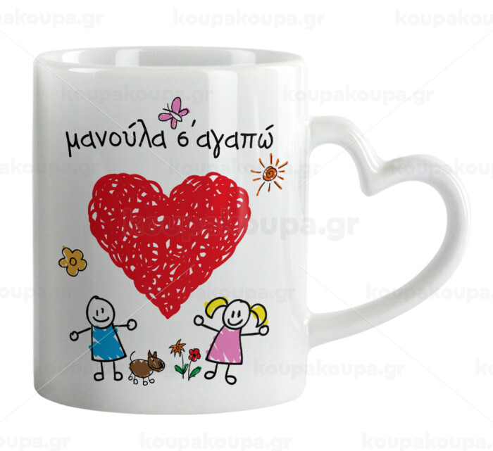 Μανούλα σ'αγαπώ!, Κούπα καρδιά χερούλι λευκή, κεραμική, 330ml