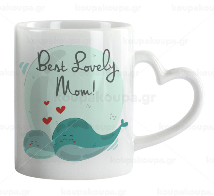 Mothers Day, whales, Κούπα καρδιά χερούλι λευκή, κεραμική, 330ml