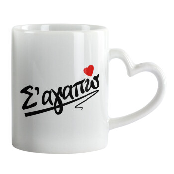 Σ΄ αγαπώ!!!, Κούπα καρδιά χερούλι λευκή, κεραμική, 330ml