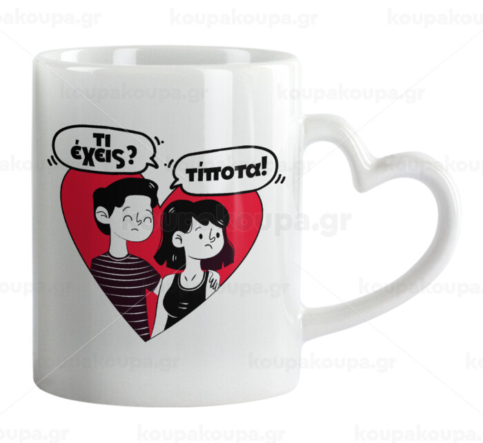 Τι έχεις? Τίποτα!, Κούπα καρδιά χερούλι λευκή, κεραμική, 330ml