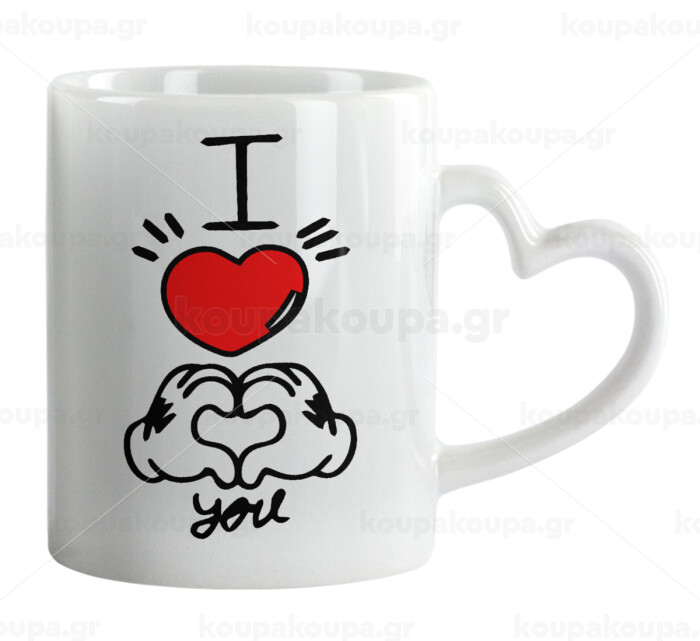 comics hands love, Κούπα καρδιά χερούλι λευκή, κεραμική, 330ml