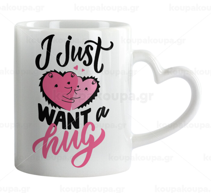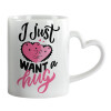 I Just want a hug!, Κούπα καρδιά χερούλι λευκή, κεραμική, 330ml