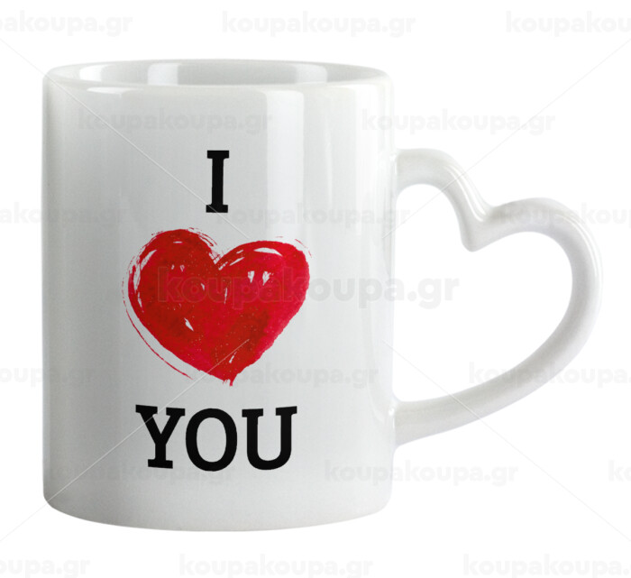 I Love You, Κούπα καρδιά χερούλι λευκή, κεραμική, 330ml