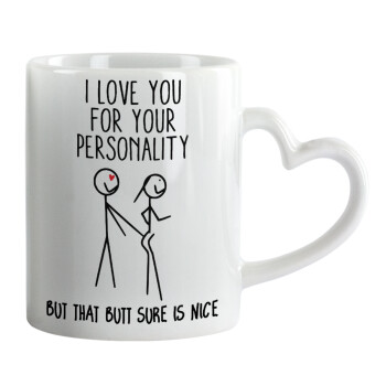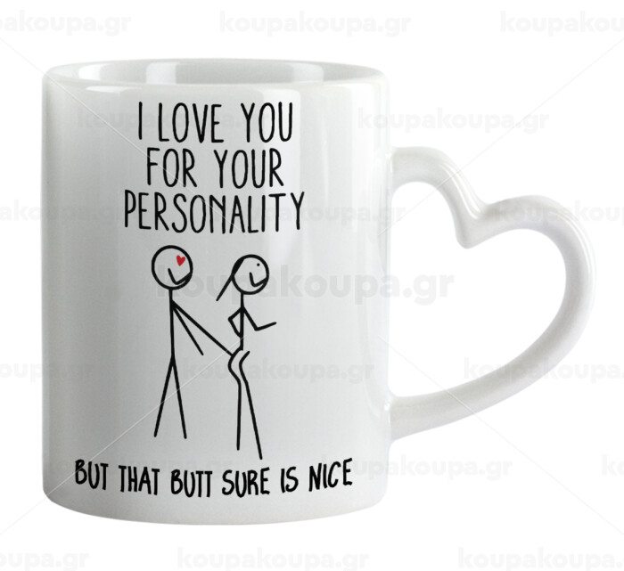 I Love you for your personality, Κούπα καρδιά χερούλι λευκή, κεραμική, 330ml