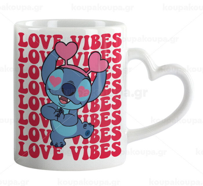 Lilo & Stitch Love vibes, Κούπα καρδιά χερούλι λευκή, κεραμική, 330ml