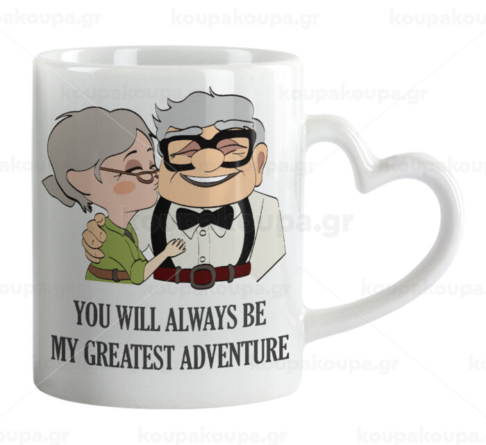 UP, YOU WILL ALWAYS BE MY GREATEST ADVENTURE, Κούπα καρδιά χερούλι λευκή, κεραμική, 330ml