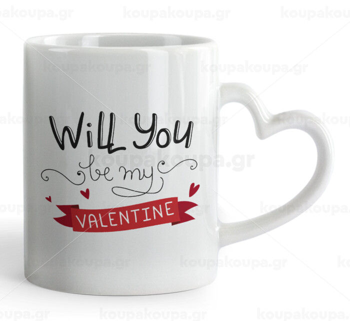 Will you be my Valentine???, Κούπα καρδιά χερούλι λευκή, κεραμική, 330ml
