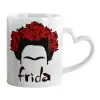 Frida, Κούπα καρδιά χερούλι λευκή, κεραμική, 330ml