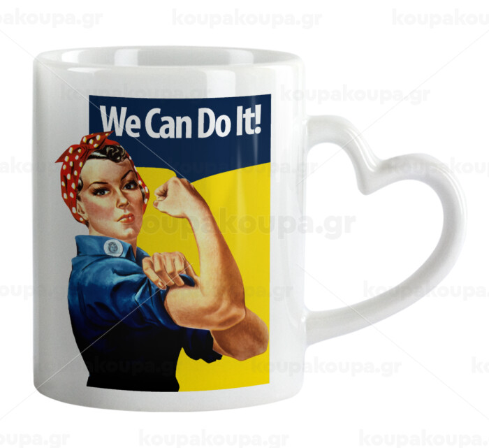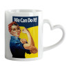 Rosie we can do it!, Κούπα καρδιά χερούλι λευκή, κεραμική, 330ml